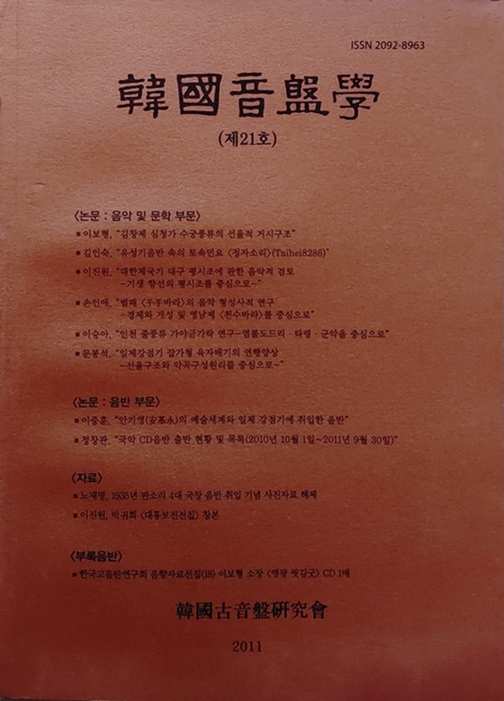 [Çѱ¹À½¹ÝÇÐ Á¦21È£](¼¿ï:Çѱ¹°íÀ½¹Ý¿¬±¸È¸, 2011³â) ÃÑ 277ÂÊ.