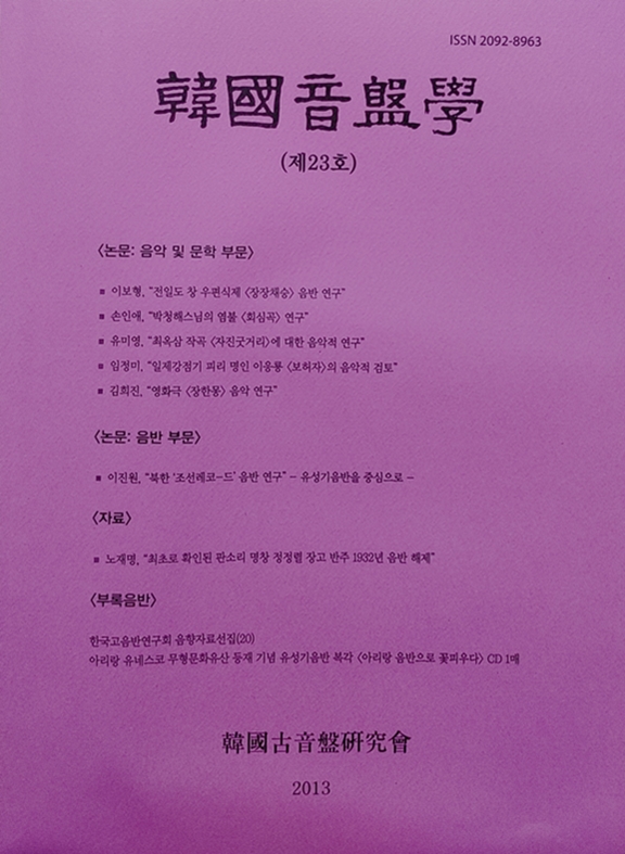 [Çѱ¹À½¹ÝÇÐ Á¦23È£](¼¿ï:Çѱ¹°íÀ½¹Ý¿¬±¸È¸, 2013³â) ÃÑ 227ÂÊ.