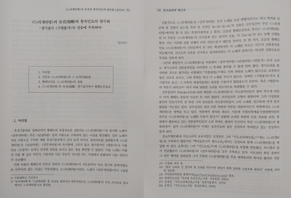 ±èÀμ÷ ³í¹® "<´À¸®°³Å¸·É>ÀÇ À¯Àü°ú Åë¼Ó¹Î¿äÀÇ ¹üÁÖÈ" [Çѱ¹À½¹ÝÇÐ Á¦22È£](Çѱ¹°íÀ½¹Ý¿¬±¸È¸, 2012³â) 61~78ÂÊ¿¡