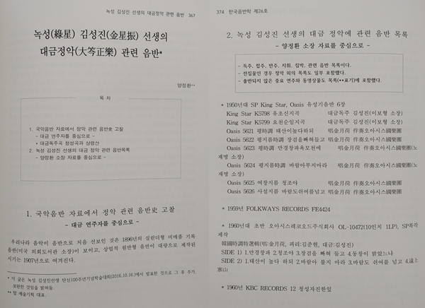 ¾çÁ¤È¯ ³í¹® "³ì¼º ±è¼ºÁø ¼±»ýÀÇ ´ë±ÝÁ¤¾Ç °ü·Ã À½¹Ý" [Çѱ¹À½¹ÝÇÐ Á¦26È£](Çѱ¹°íÀ½¹Ý¿¬±¸È¸, 2016³â) 367~391ÂÊ¿¡