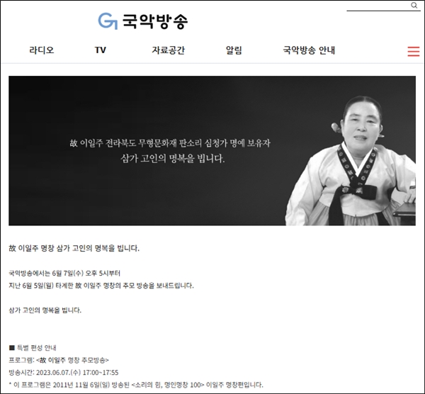 2023³â 6¿ù 7ÀÏ ¿ÀÈÄ 5~6½Ã ±¹¾ÇFM¹æ¼Û 'ÆÇ¼Ò¸® Àΰ£¹®ÈÀç °í ÀÌÀÏÁÖ ¸íâ Ã߸ð' ¹æ¼Û.